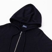 ドルモアの秋冬定番ニットであるファインメリノ100% 8ゲージのジップアップニットパーカー。