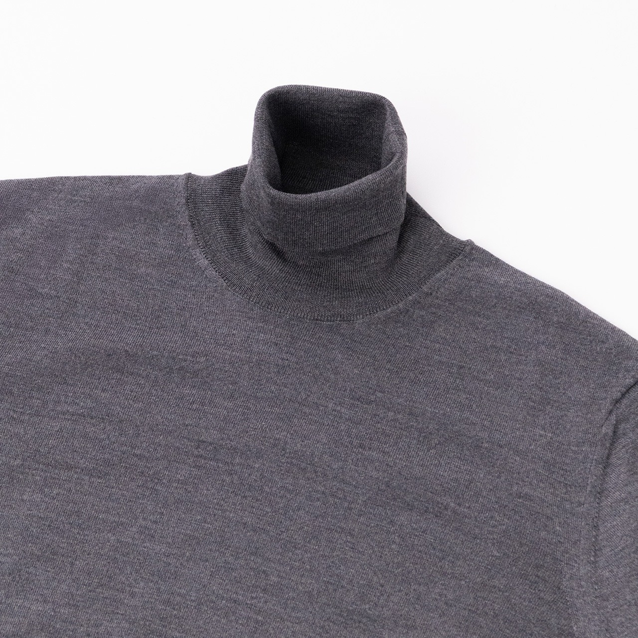 年間通してお召いただけるメリノウール30ゲージタートルネックニット。