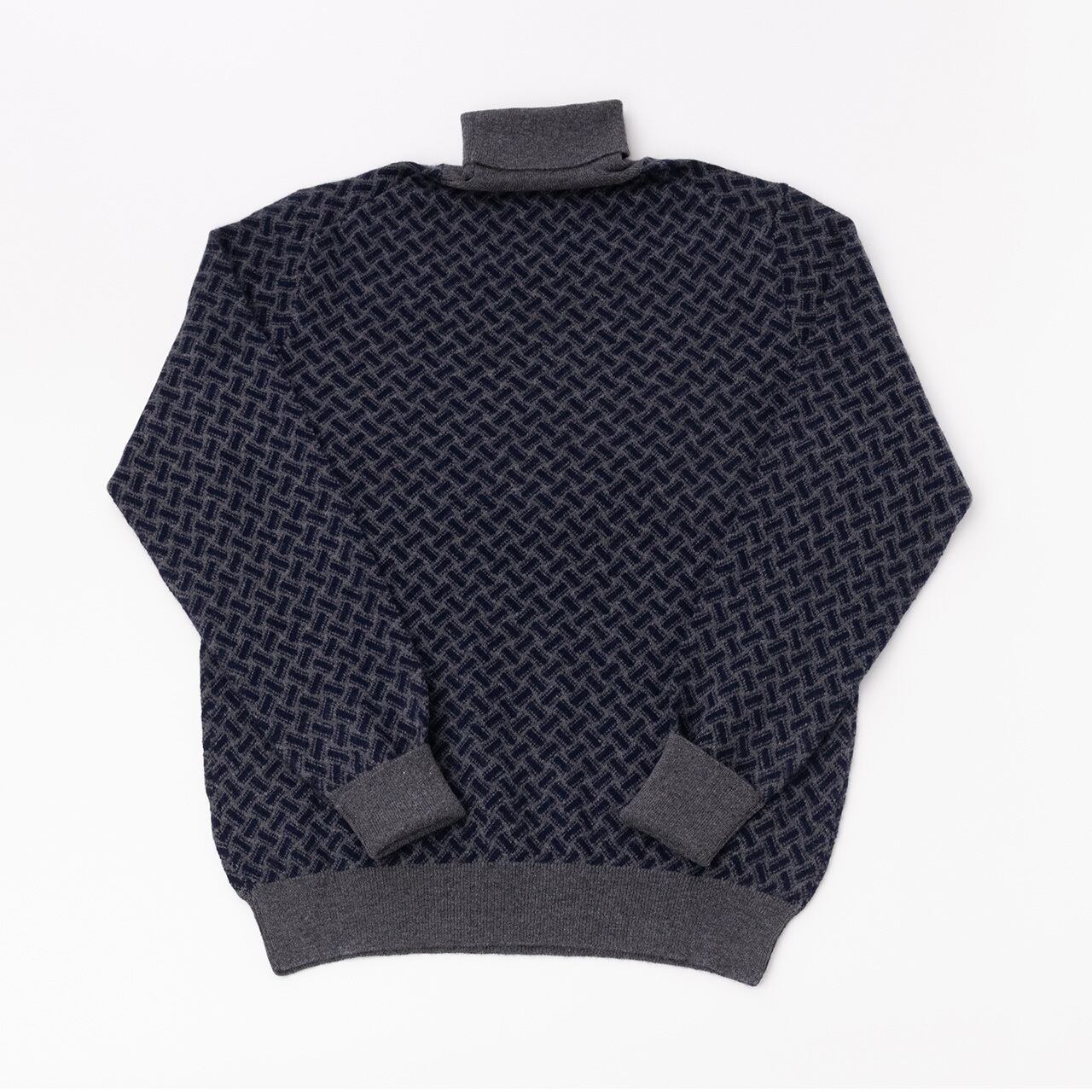 インターシャ ビスケット柄 カシミヤタートルネックニット