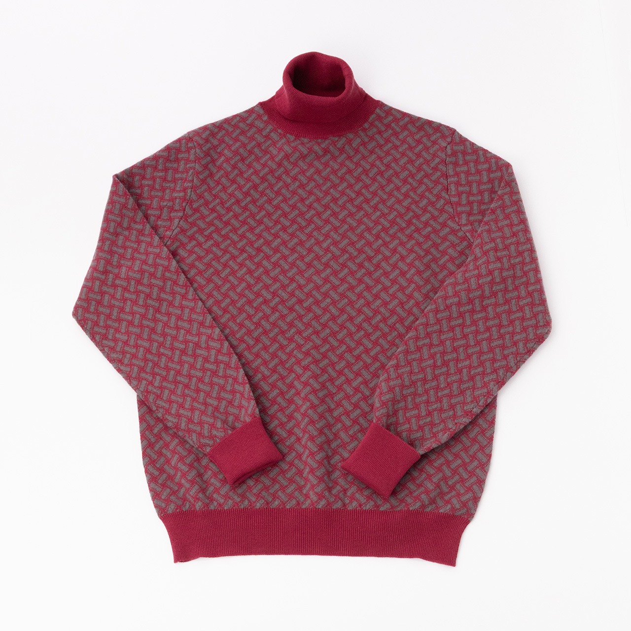 DRUMOHR【D2K104-RB18】ドルモア カシミヤ インターシャ21ゲージ ビスケット柄タートルネックニット