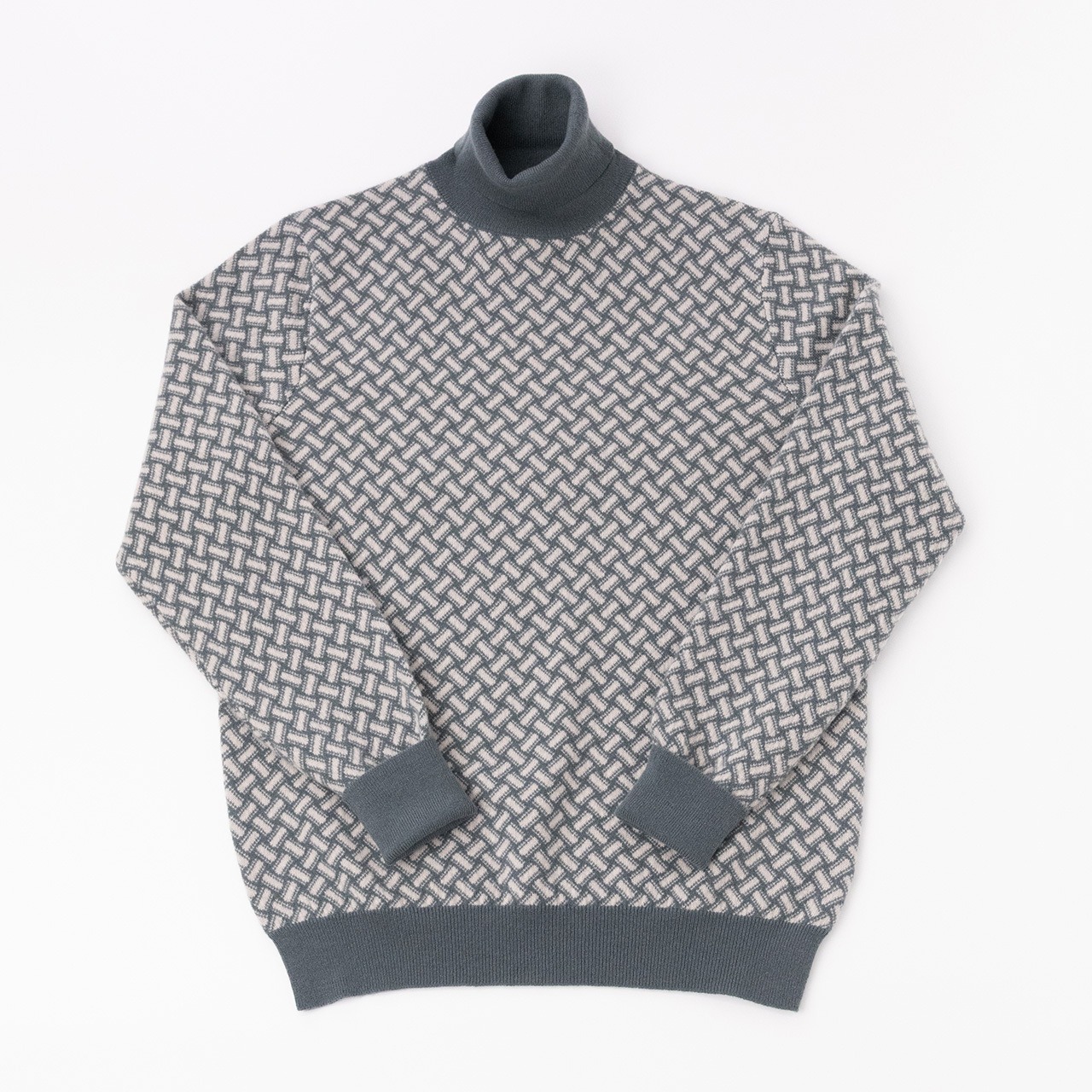 インターシャ ビスケット柄 カシミヤタートルネックニット