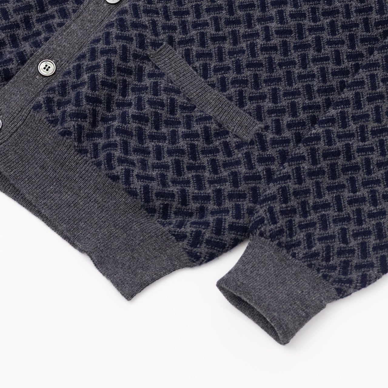 【D2K110-AI39】カシミヤ インターシャ21ゲージ ビスケット柄カーディガン