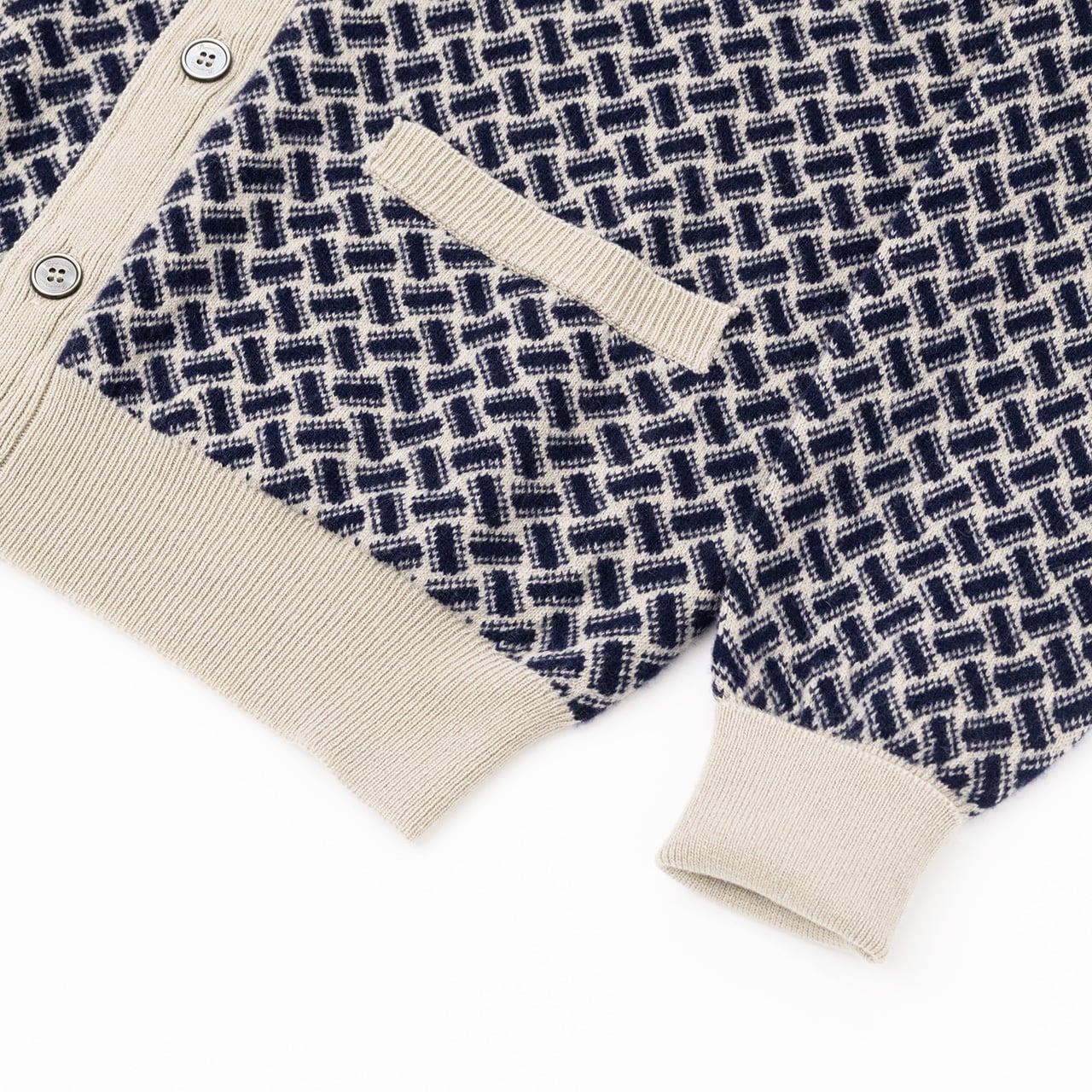 インターシャ ビスケット柄 カシミヤカーディガン