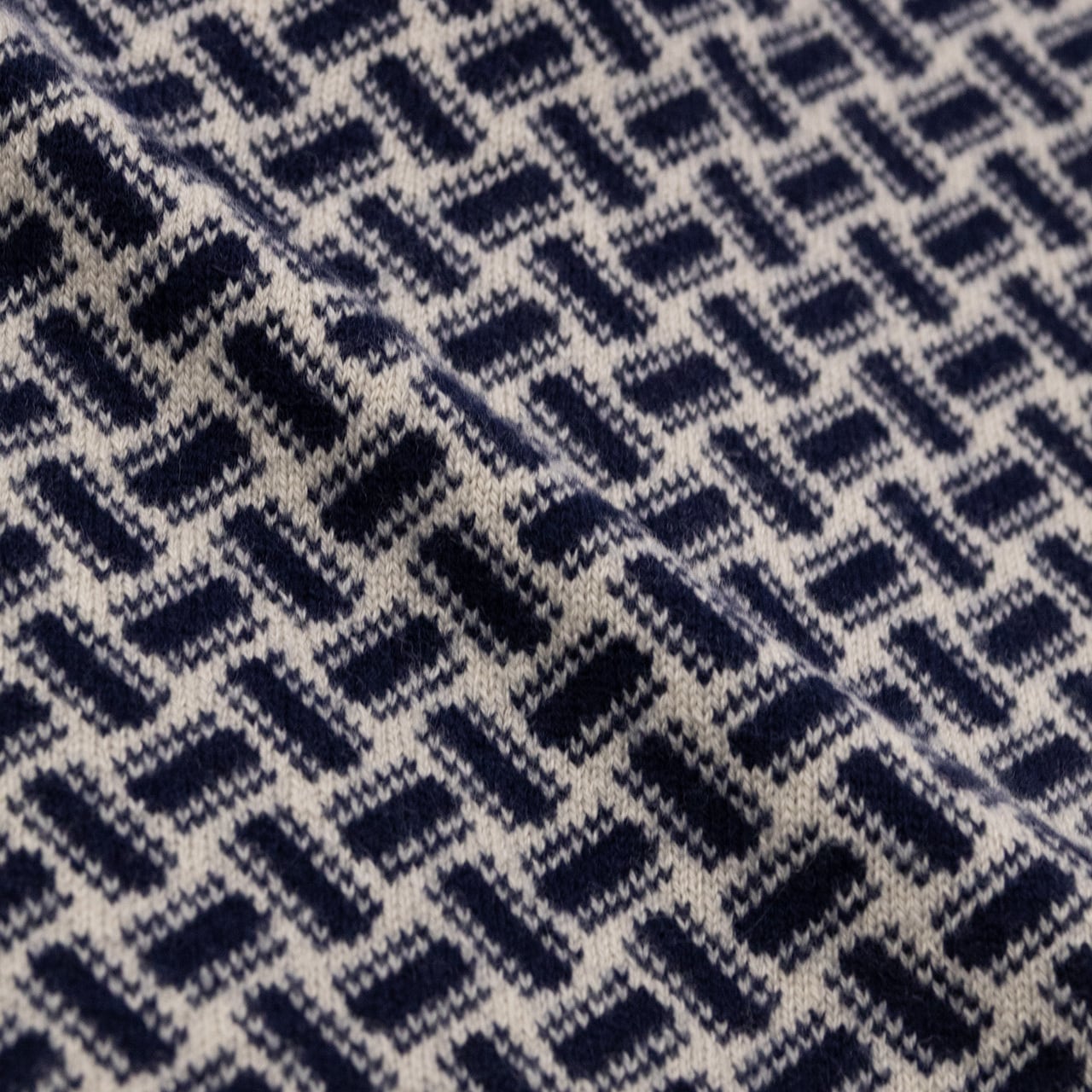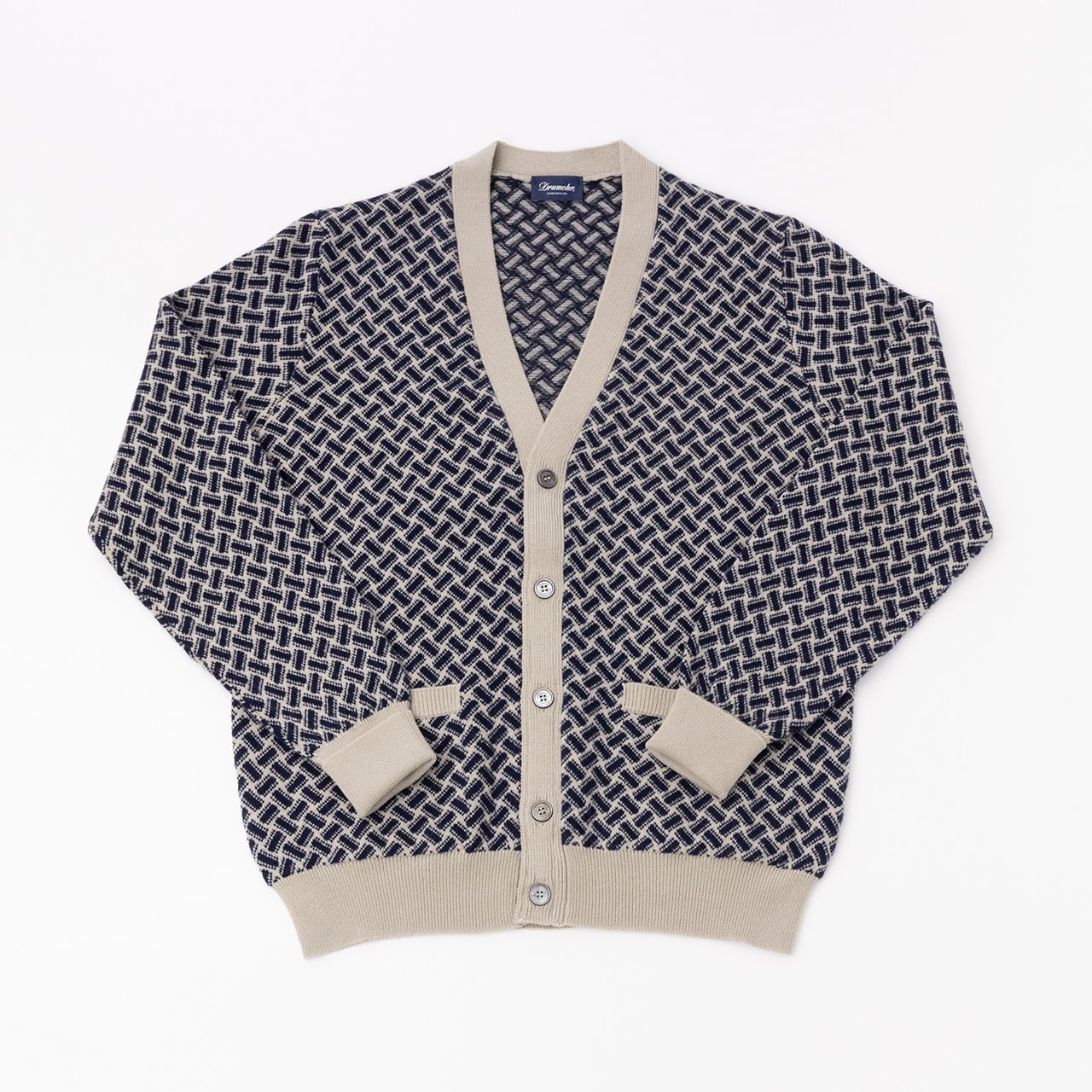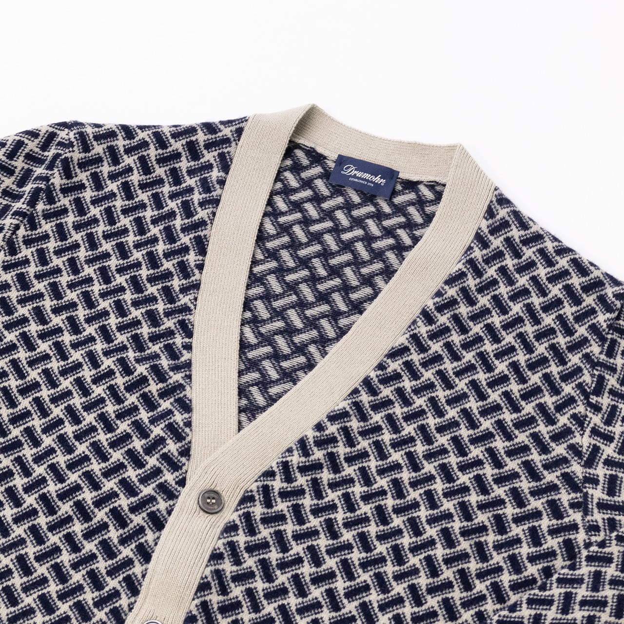 こちらの柄はブランドの起源であるスコットランドで生産している時からある柄で、見る人が見れば一目で「Drumohrのラグジュアリーなカシミヤニット」と分かる一品です。