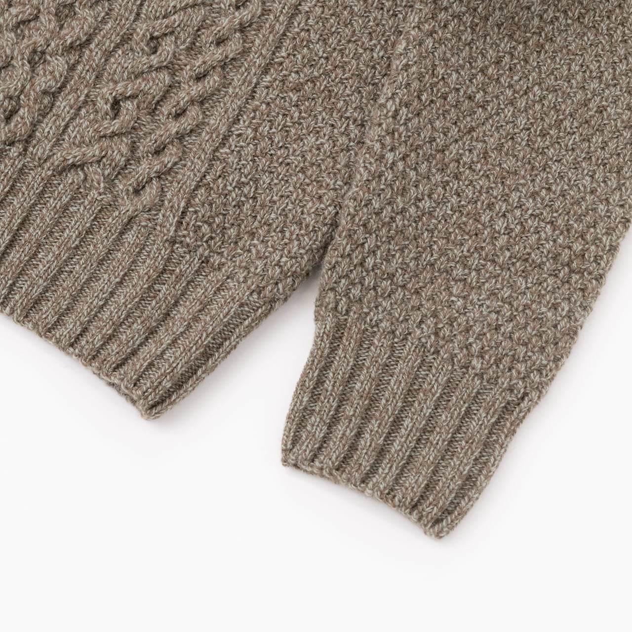 前身頃のケーブル編みデザイン独特のミドルゲージニット